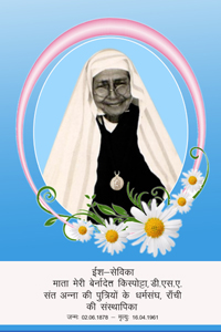 In the course of time, the secret thoughts of these four girls were revealed. Consequently, there were many objections and obstacles on their way, yet they remained firm in their determination. Even the Church Authorities were against their decision because it might cause hindrance in their missionary work. On the other hand their family members too opposed them because it was against the custom and tradition of the Tribal society to remain unmarried. Despite all kinds of challenges and difficulties these four girls were so strong in their love of Jesus that nothing could separate them from the love of Christ. Not even the allurement of the golden jewelry and marriage arrangement could keep them from becoming the bride of Christ. Thus, they took a revolutionary step to serve God’s people by dedicating their life unreservedly. Such a wonderful vocation of these girls was ultimately admired and accepted by the Church Authorities and Archbishop Paul Goethals, S.J., allowed them to go ahead in their religious vocation. Finally, after completing the required formation under the guidance of the Jesuit Fathers and Loreto Mothers, Mother Bernadette and her three companions- Mother Cecilia, Mother Veronica and Mother Mary entered into Postulancy on 26 July 1897. With this historic event a new Indigenous Congregation was established as the Congregation of the Daughters of St. Anne Ranchi. Mother Bernadette, the Founder of this Congregation and her three companions became the first four pillars of the DSA Congregation.
